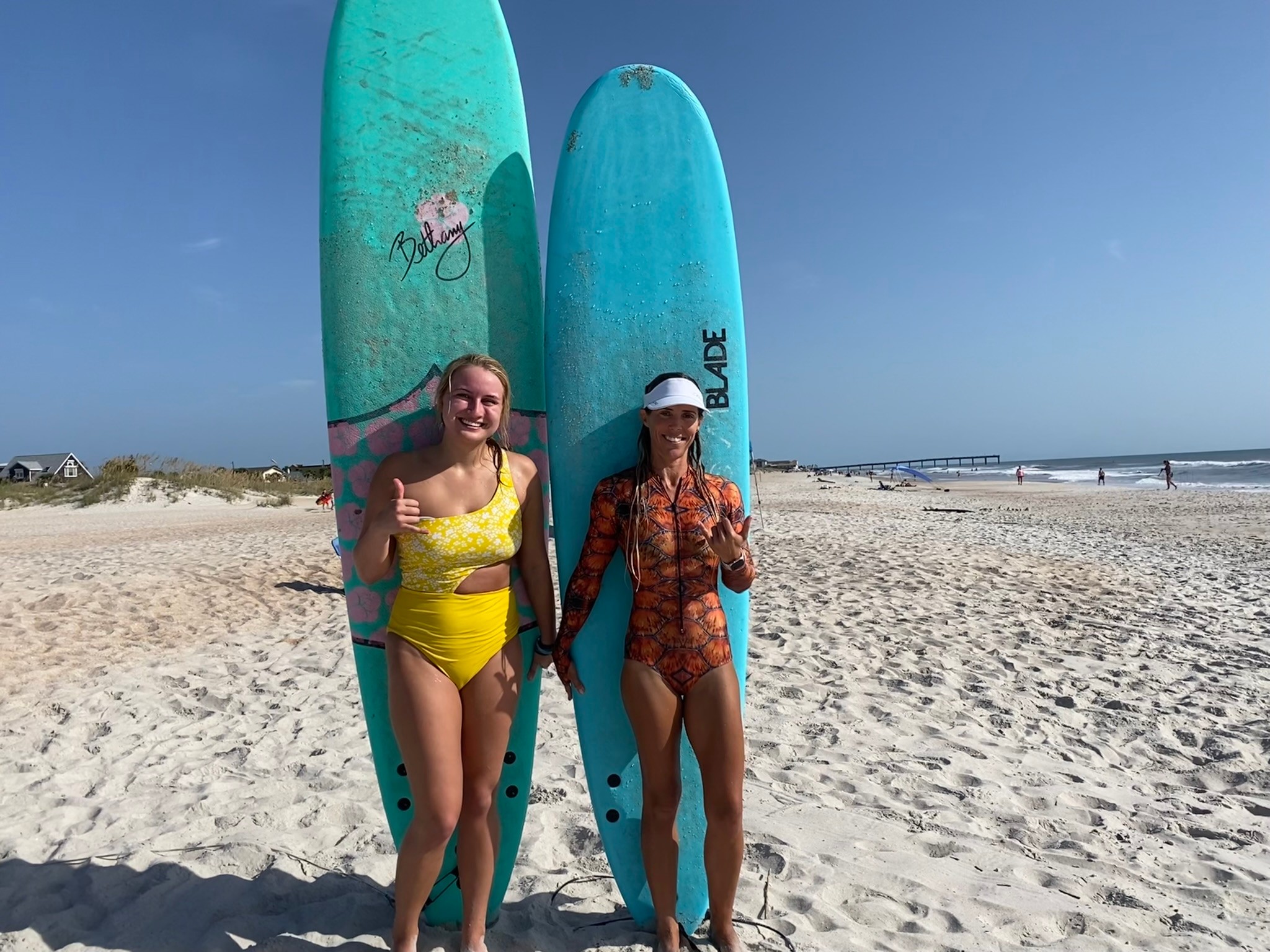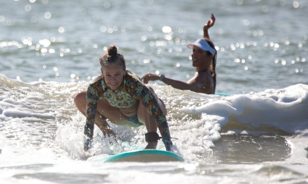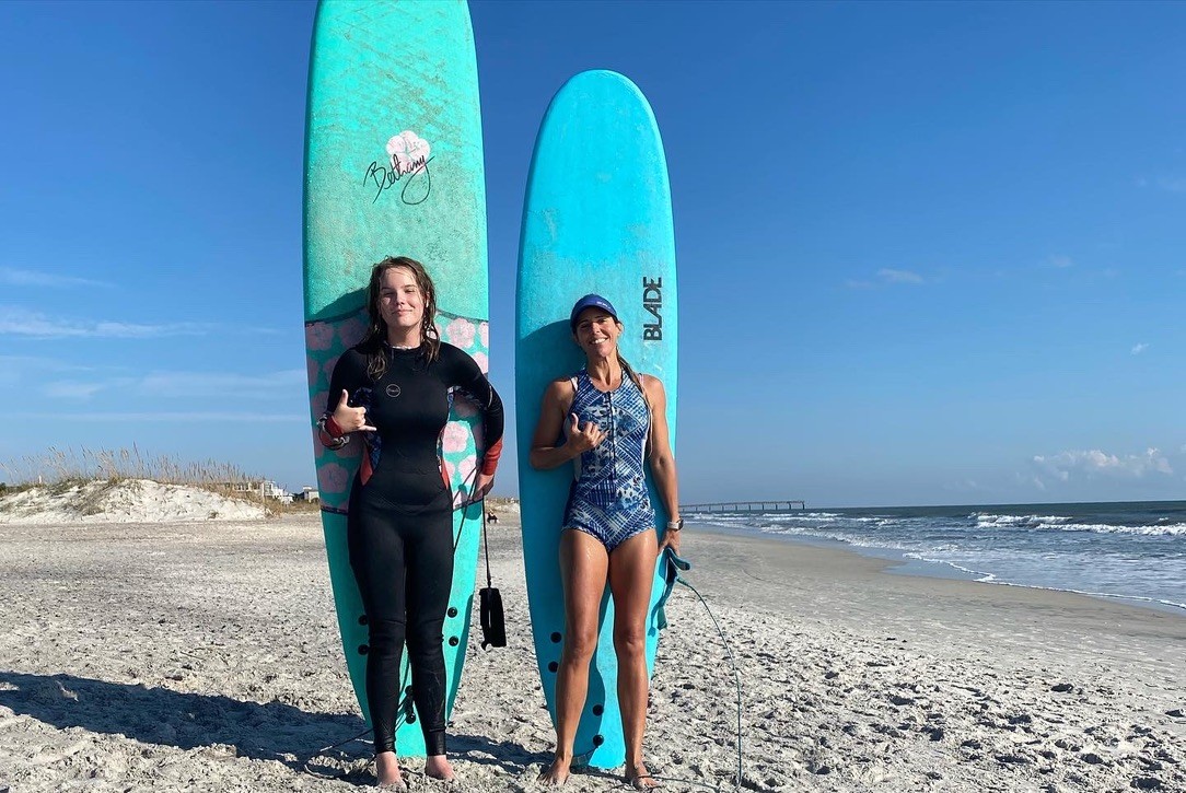 I traveled a lot after high school to experience and live in other areas of the country. I returned to surfing when I was 29 or 30 after moving back to the St Augustine area from the west coast during the recession of 2008. I started dating a wonderful someone who would take me surfing(even tandem surfing) which was so fun, and I got hooked on surfing again. I eventually moved to St Augustine Beach and picked up surfing for real when I managed to live right on the heart of ST Augustine beach to 11th st. So now, I’ve lived on St Augustine Beach ever since and had the opportunity to develop my surfing, then my teaching w/time working at 3 different camps in town to teach my way into realizing how much I love to share surfing! I wanted to focus on being available for a woman that wants to get out there and really for anyone eats all experiencing any struggle but still wants to surf or that is looking for a guide to get out in the ocean and learn to read waves and control a board or piece of equipment similar on a wave. So now I’m growing my business and creating different events holding a space for people, especially women who want to experience surfing or the beautiful healing energy the ocean can provide.