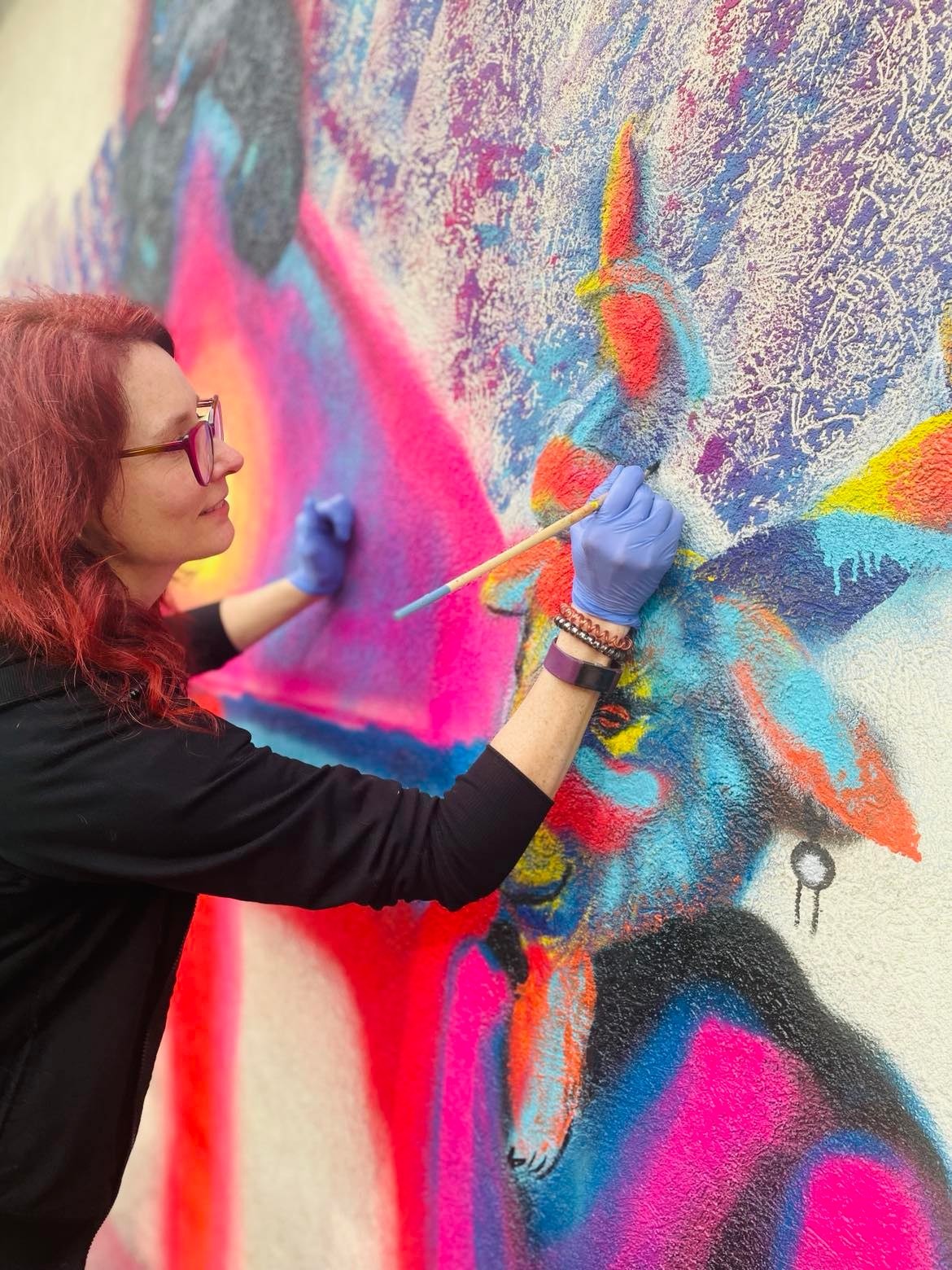 First and foremost, I am a painter. I work in my home studio, primarily using traditional canvas and acrylic paint. My artistic expression extends beyond the canvas, encompassing various mediums and disciplines that make my creative career multi-faceted. While my roots lie in painting, I have ventured into murals, transforming spaces with vibrant and meaningful visuals. Teaching art workshops is another facet of my work that brings me immense joy. Leading intuitive painting workshops is remarkably fulfilling, as it allows me to be a catalyst in helping others tap into their creativity. Witnessing the transformative power of artistic expression in others is a source of pride and inspiration. My creative repertoire includes digital art, graphic design, printing, and fabric dying. Surprisingly, my artistic journey turned unexpectedly into movement expression, including dance and aerial performance. The fusion of visual art and movement adds a dynamic and multidimensional aspect to my work. What sets me apart from others is my unconventional creative process. While some may view it as reckless, I thrive on approaching each project without a predefined plan. By getting my thinking mind out of the way, I’ve discovered a deeper level of expression than I had previously realized was possible. Embracing the uncertainty of the creative journey allows me to tap into a wellspring of authenticity, resulting in raw, genuine art that reflects my unique perspective.