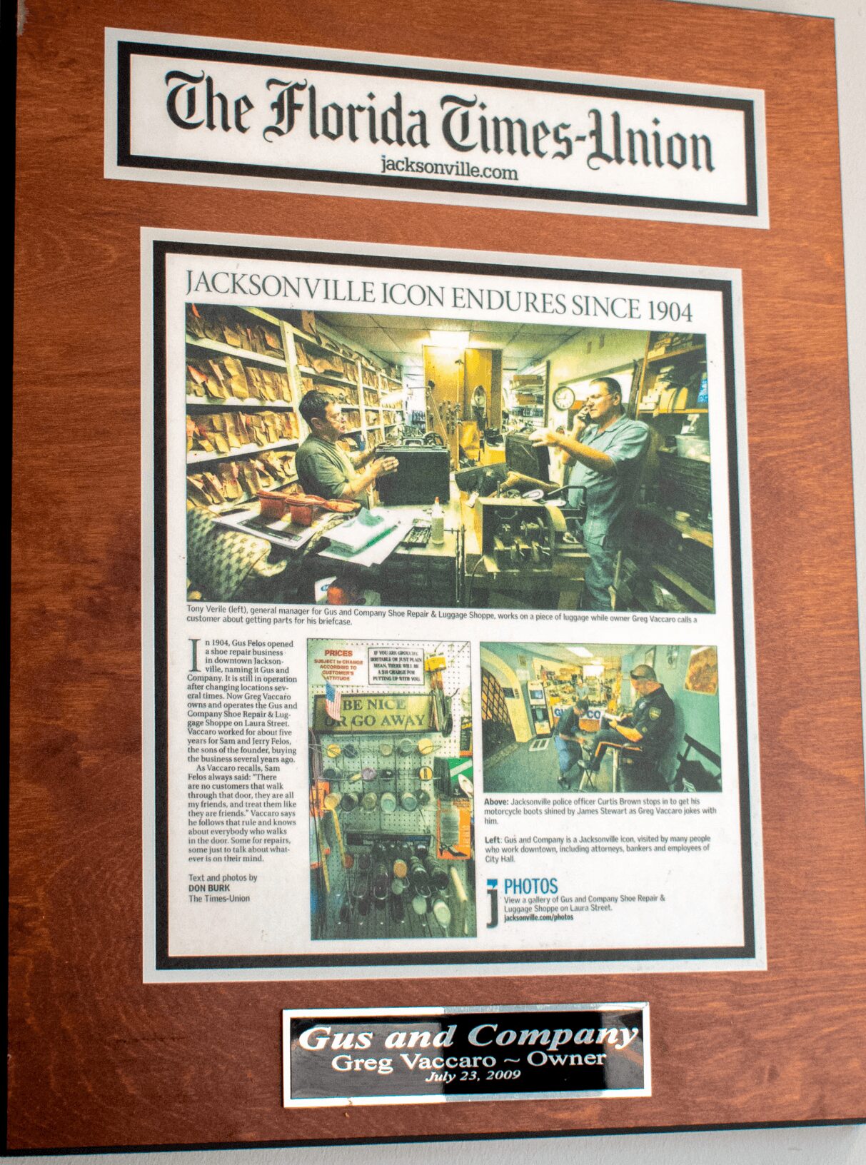 Our journey began in 1904 on Bay street. We have done repairs and shines for most every Mayor and Sheriff as well as other notable personalities including John Travolta and Rhianna. In the past 121 years we have moved 5 times but have always remained in the core of downtown. We are now in our 4th generation of family cobbler. We do extensive repairs on shoes, boots, belts, handbags, wallets, saddles, luggage, and much much more. We do the repair work for the mounted unit and motorman units for JSO as well as FHP CCSO and SJCSO.